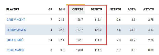 进攻效率勒布朗127.7湖人第二,但防守效率123湖人倒数第二,净效率值4.8也没有多出色,换言之勒布朗在场防守端很多时候是划水的,这对于一个即将41岁的老将其实是一件好事,他防守端划水湖人也能赢球啊,他已经不需要将球队扛在肩膀上,常规赛减少消耗,季后赛才有体能。