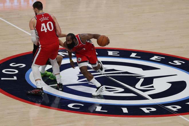 快船队首发阵容:哈登、比尔、邓恩、琼斯、祖巴茨