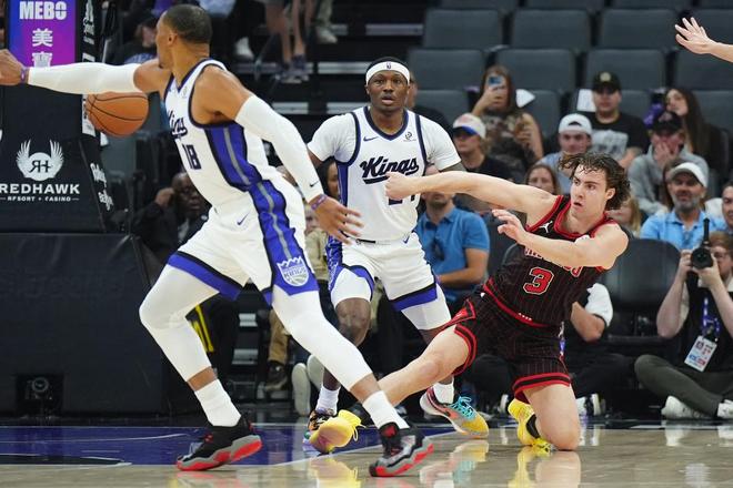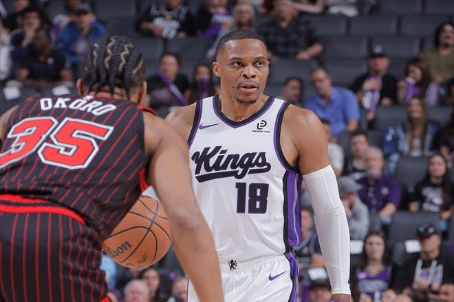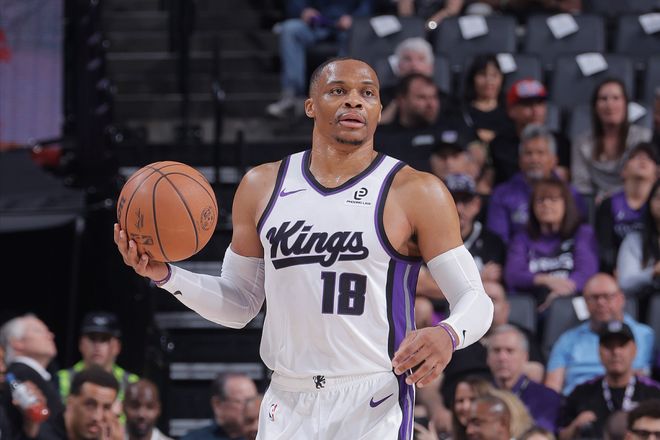 在德罗赞、拉文、小萨、穆雷和亨特一整套首发缺阵的情况下,超级残阵国王队之所以还能交出这样的表现,37岁的威少暴走是核心原因。