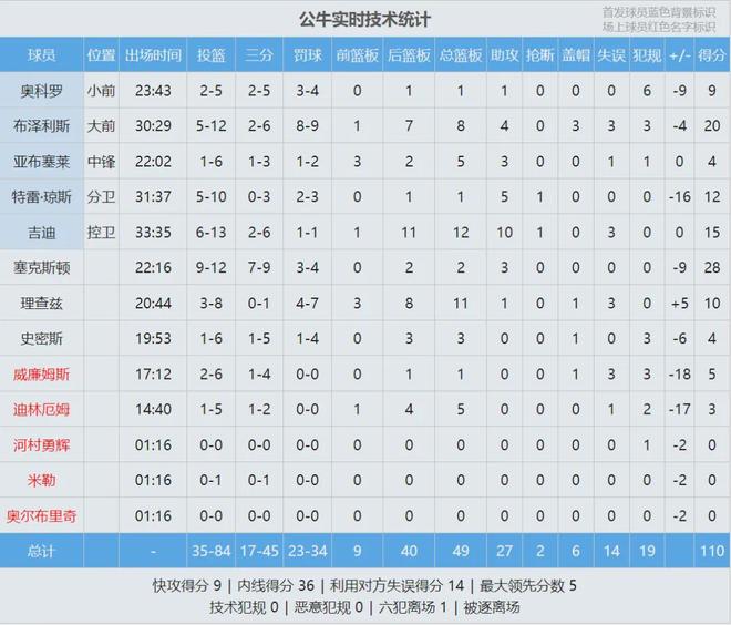 吉迪公牛生涯16次三双,超越皮蓬升至队史第二,仅次于乔丹的28次。国王后卫威少首发出战34分43秒,投篮17中7,三分5中3,罚球6中6,得到23分11篮板12助攻1抢断0失误,正负值+10。这是威少NBA生涯第208次三双!