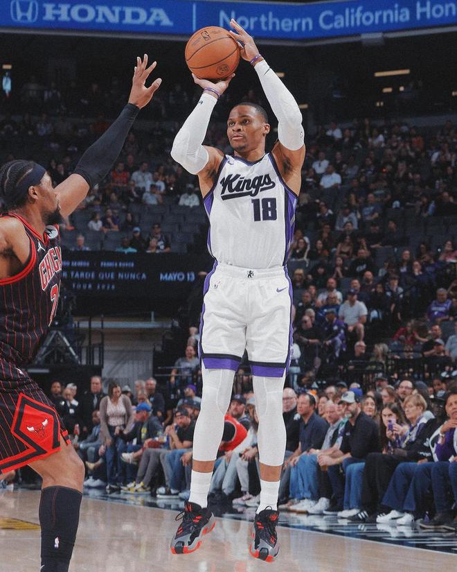本赛季至今,威少在国王打了60场比赛,仅缺阵5场。其中54场首发,场均出战29分钟,得到15.5分5.4篮板6.5助攻1.3抢断3.3失误,三项命中率:43%,34.1%,71.3%。场均得分、篮板、助攻和三分命中率,都是近三年最高!