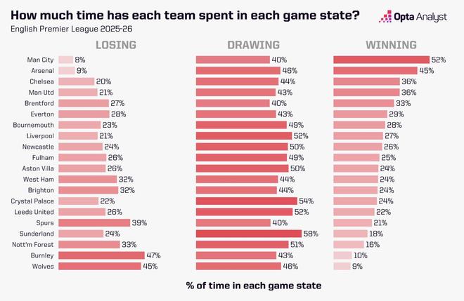 同时,这也是阿森纳本赛季联赛里最长的一次单场拖延时长。他们本场的拖延时间占总比赛时长的30.6%,在2025-26赛季所有英超球队中排名第11。